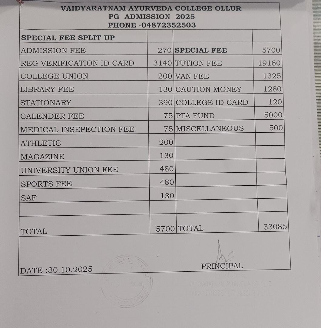 Kerala University of Health Sciences, affiliation for Ayurveda UG & PG courses for the year 2025-26
